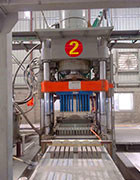 答:有這種認(rèn)為的人,主要是對液壓傳動的成型機(jī)在振動成型時的壓力和砌塊成型的振動系統(tǒng)還不太了解。就拿美國貝賽爾公司生產(chǎn)的BH3-1成型機(jī)來說,在振動成型時壓頭油缸的油壓隨著模箱中的拌合料振動密實(shí)而同步下降,此時壓頭油缸處于低壓浮動狀態(tài),不可能施加很大壓力;此外,在振動成型時如果施加很大壓力,等于振動荷載大幅增加,振幅大幅度衰減,振動系統(tǒng)振動不起來。因此不論液壓傳動還是氣動、機(jī)械傳動的成型機(jī),砌塊成型時主要靠振動使物料密實(shí)形成高強(qiáng)度。其實(shí),砌塊強(qiáng)度與原材料級配,配方都有直接的關(guān)系。另外,液壓傳動、氣動或者機(jī)械傳動的砌塊成型機(jī),成型產(chǎn)量差異并不大,產(chǎn)量的高低主要是看其輔機(jī)的配置及整條生產(chǎn)線的自動化程度設(shè)計(jì)。