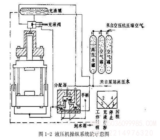 泵一蓄勢器傳動中增設了蓄勢器,蓄勢器的主要作用在于儲存高壓液體,平衡泵的負荷。當液壓壓磚機工作時,泵和蓄勢器同時供給高壓液,因此在較短時問內,可以供給液壓壓磚機以大量高壓液。當液壓壓磚機耗液量較少或停止工作時,泵供給的高壓液可儲于蓄勢器內備用。泵和蓄勢器供給液體的壓力保持在蓄勢器壓力波動值范圍內,可認為基本恒定。工作行程速度則隨工件變形抗力的增加而減少。有時為了供給液壓壓磚機以更高壓力的工作液體,在工作缸與分配器問增設增壓器。增壓器的低壓缸由泵或泵蓄勢器站供給一定壓力的工作液體,經增壓器增壓后,供給液壓壓磚機工作缸使用。