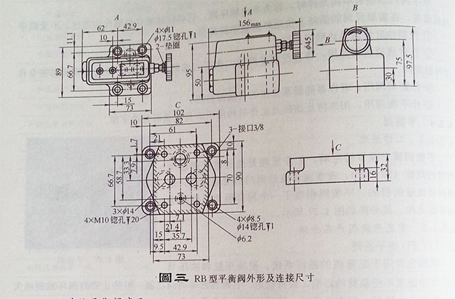 圖3RB型平衡閥外形及連接尺寸
