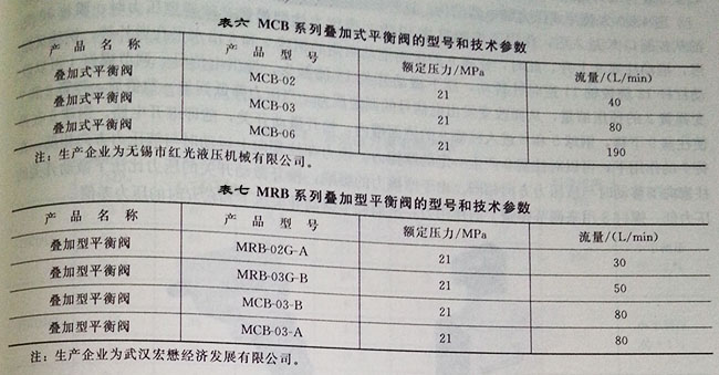 (3)MCB系列疊加式平衡閥(見表6)
